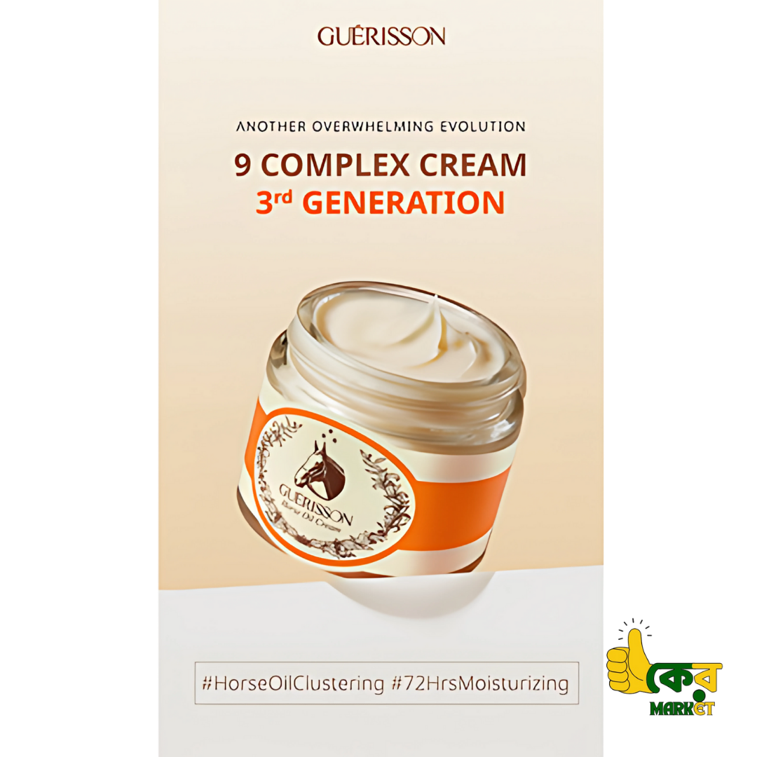 Guerisson 9 Complex Cream is a well-loved Korean moisturizer that merges traditional and innovative skincare. Crafted with premium horse oil and enriched with skin-loving ingredients like snail mucin, niacinamide, ceramide, and peptides, it deeply nourishes, repairs, and revives dry or uneven skin. Its rich yet melt-in texture offers lasting hydration and a radiant glow.